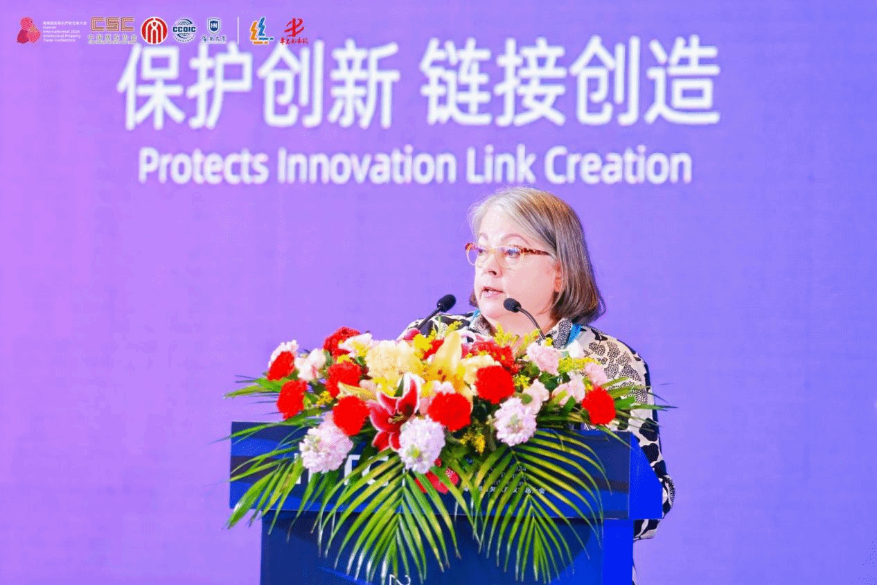在上午进行的主旨演讲中,海南自由贸易港知识产权法院党组成员、副院长刘冠兵,从“为创新而生,肩负创新使命;护创新而行,助推新质生产力发展;循创新而进,将改革向纵深推进”等三个方面,介绍了海南自贸港知识产权法院在服务保障中国特色自由贸易港建设、加大知识产权司法保护力度,营造良好营商环境方面的工作。