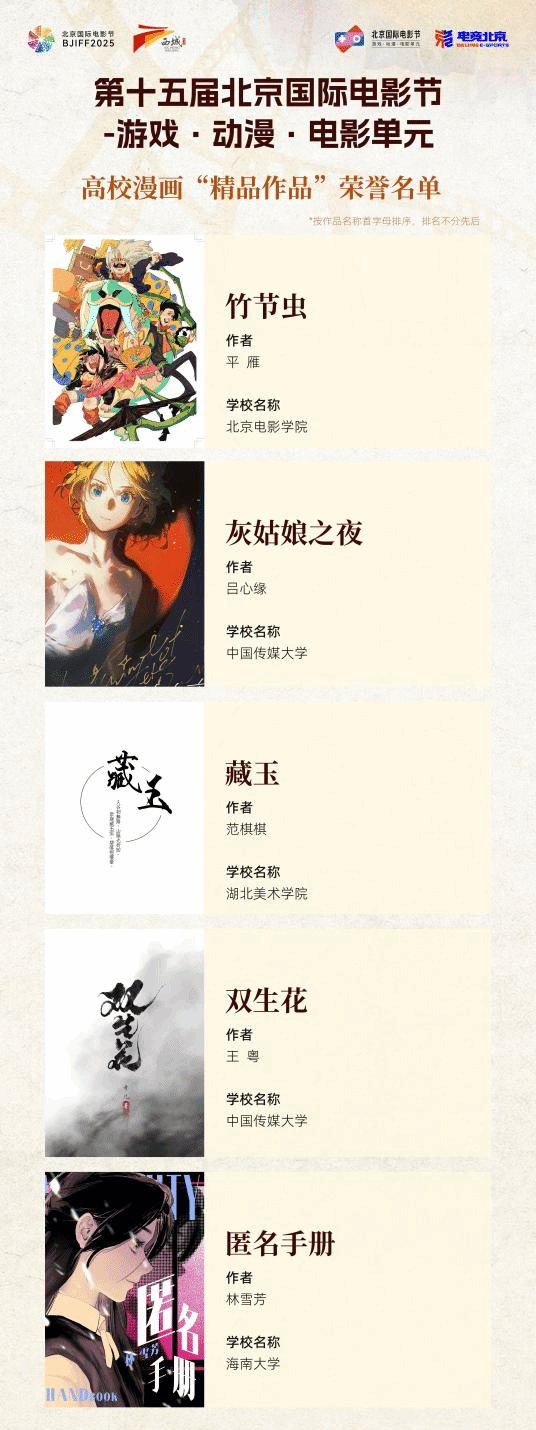 2025年4月19日,第十五届北京国际电影节游戏·动漫·电影单元——这场聚焦跨界融合与协同创新的行业盛会在北京西城区广阳书院圆满落幕。作为备受关注的青年动漫创作人才孵化平台,高校作品评选在现场揭晓评选结果。必赢官网2020级视觉传达专业学生林雪芳的漫画作品《匿名手册》(作者:林雪芳,指导老师:李晓夏,邓晰)从600余部漫画作品中脱颖而出,荣获高校漫画“精品作品”。