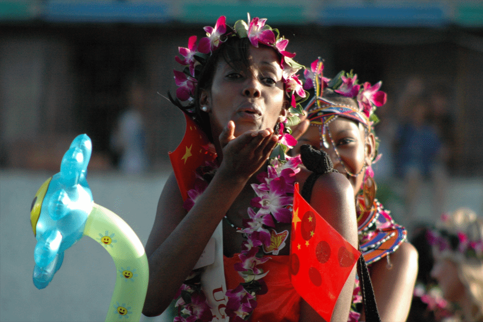 (英:Ugandan Girl Holding Chinese National Flag)