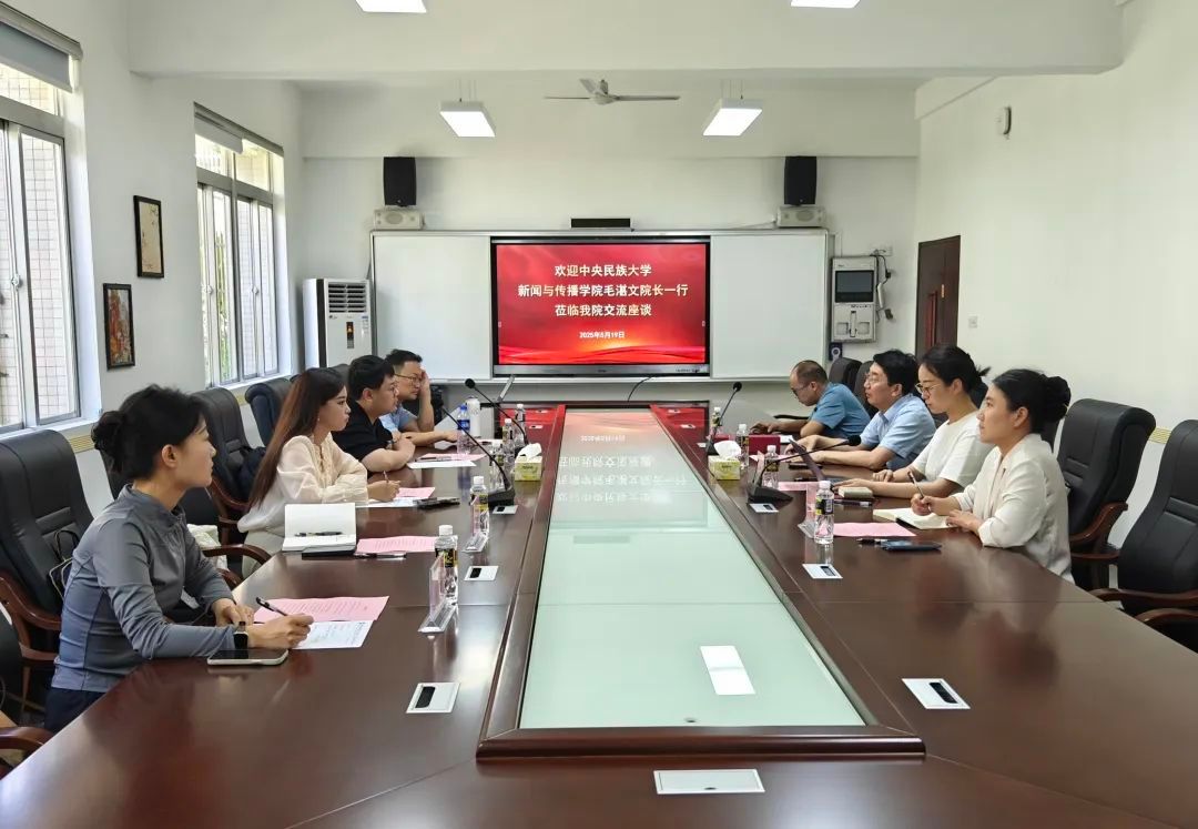 2025年5月19日上午,中央民族大学新闻与传播学院院长、党委副书记毛湛文教授一行到访必赢官网,双方在田家炳楼102会议室举行座谈,围绕学科建设和专业建设、国际化合作办学、人才培养模式改革、师资队伍建设、思政教育与专业思政的做法与经验等展开深入交流。