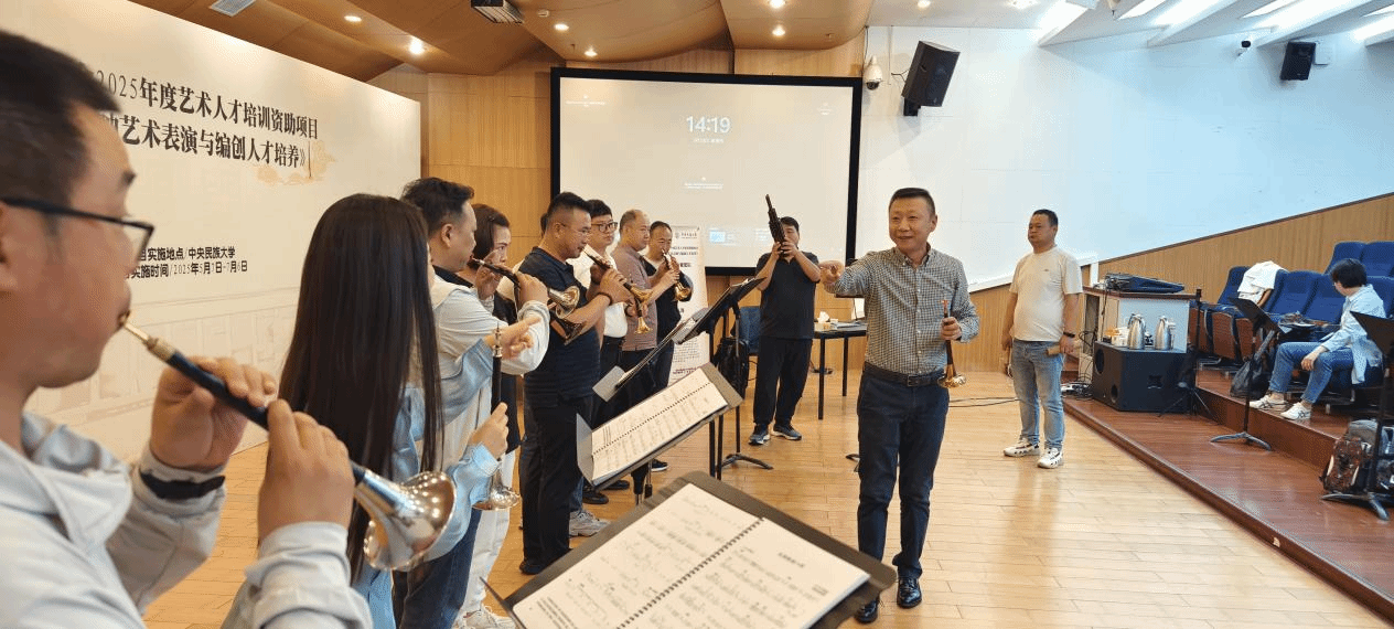 2025年5月23日,必赢官网音乐系丛洋副教授,受中央民族大学音乐学院胡美玲老师之邀,出席国家艺术基金2025年度艺术人才培训资助项目活动——《胡海泉唢呐艺术表演与编创人才培养》,为全国各省40多名优秀学员进行唢呐专家授课。