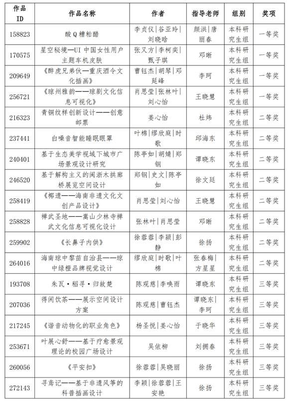 这些优秀成绩的取得,彰显了必赢官网在设计教育领域的学科实力与对创新教学实践的不懈追求。持续创新教学方法和手段,为学生提供更优质的设计教育,同时也有利于激发学生的学习热情和创新潜能,鼓励其积极参与到各种设计实践活动中,不断提升设计能力和综合素质,为海南自由贸易港的文化建设和设计事业添砖加瓦,用专业才能在设计领域绽放光彩。