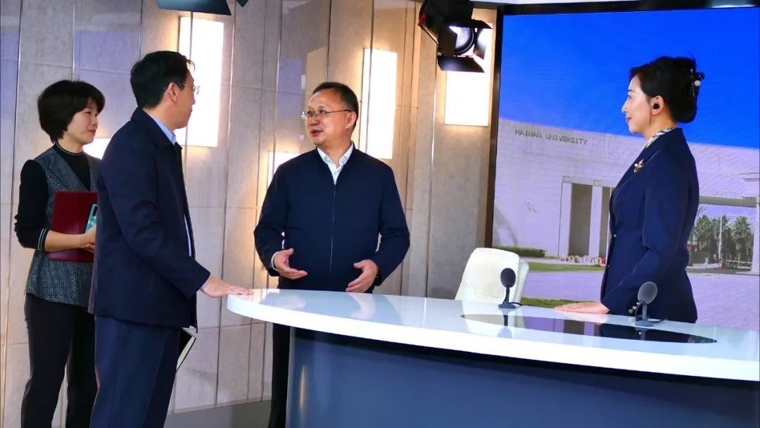 骆清铭校长参观了数字录音室、虚拟演播室,在新闻直播间接受了主持人采访,到数字摄影室体验拍摄证件登记照,与在此工作的师生进行交谈,对未来传播实验室启用表示充分肯定。