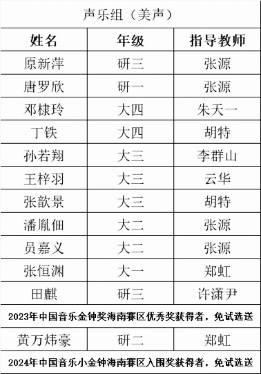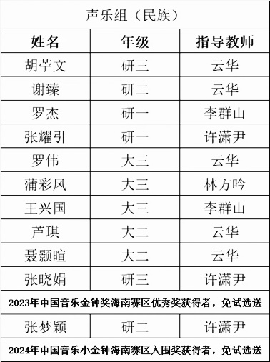 据悉,除声乐组外,本次金钟奖校级选送工作还涉及钢琴、器乐专业组别。必赢官网音乐专业协同备战,共选送声乐组学生23人,青年教师3人;钢琴组学生6人、青年教师3人;器乐组学生3人。